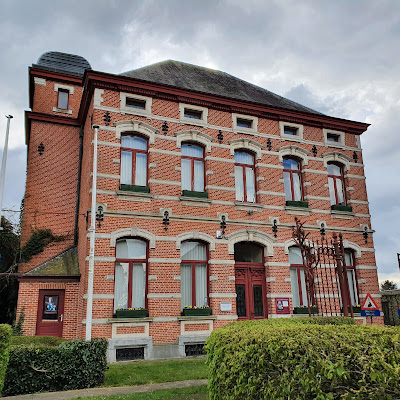 Het tweede deel van de route van Café Het Vermaek verloopt over asfalt, voornamelijk rustige wegen met links en rechts nog een paar oude hoeves. Op het einde loopt de route door de Cardijnwijk, een sociale woonwijk die de tand des tijds naar mijn gevoel niet zo goed doorstaan heeft. Wat verder stap ik voorbij de begraafplaats... Even een bezoekje brengen aan mijn grootouders en dan weer verder. Verrassend kom ik uit aan het Cultuurcentrum, gehuisvest in een 19de-eeuws herenhuis. Hier woonde ooit Dr. Ruyssen, de stichter van de Geneeskundige Gestichten (nu het Psychiatrisch Centrum Gent-Sleidinge). Of hoe ik toch weer nieuwe hoekjes en kantjes leer kennen... Ik ben nu al benieuwd wat de andere route van 11 kilometer voor me in petto heeft.